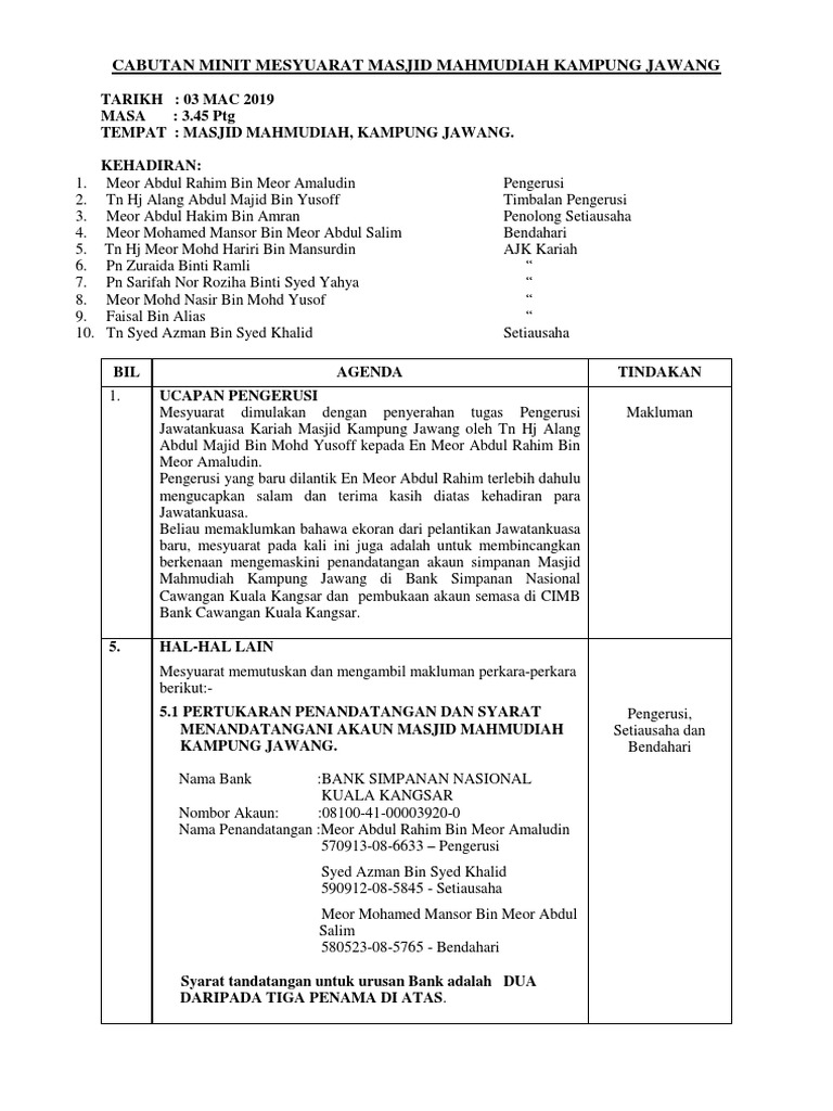 Cara Buat Minit Mesyuarat Buka Akaun Bank