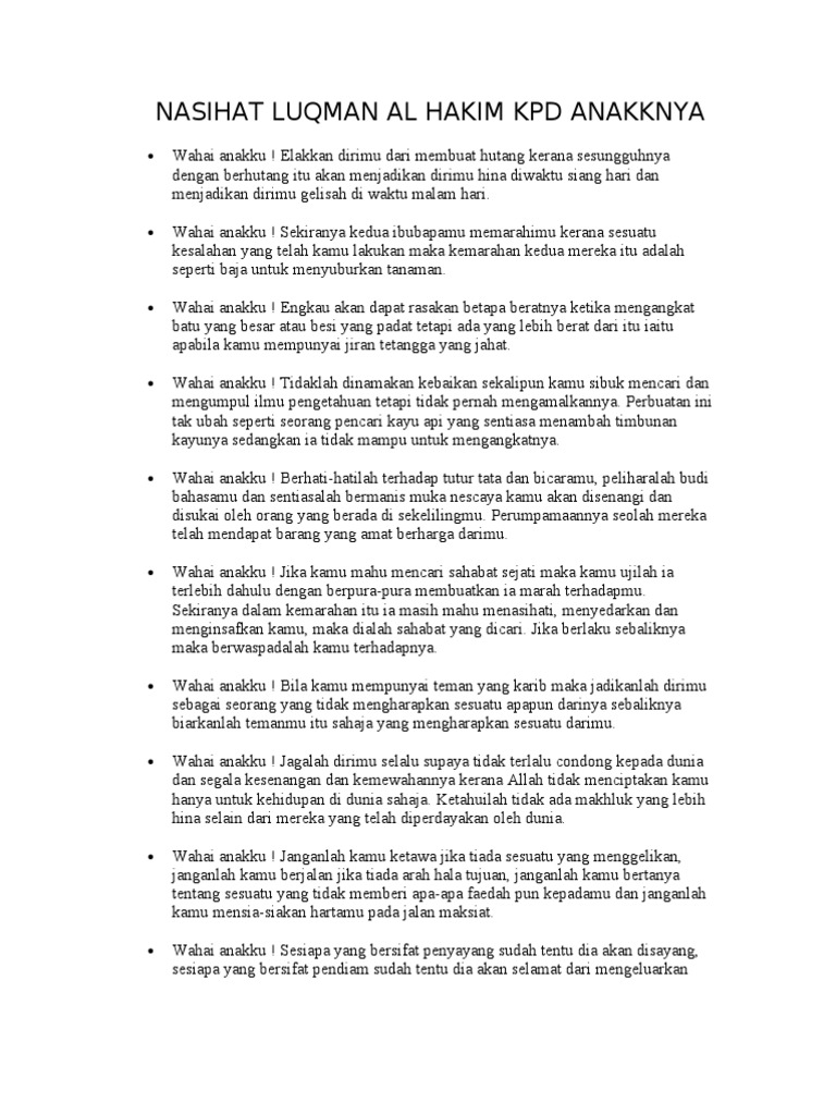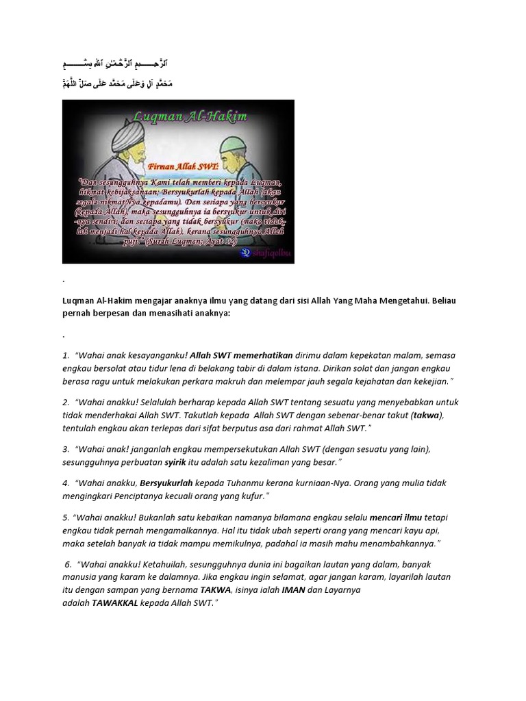 Nasihat Luqman Al Hakim Kpd Anakknya