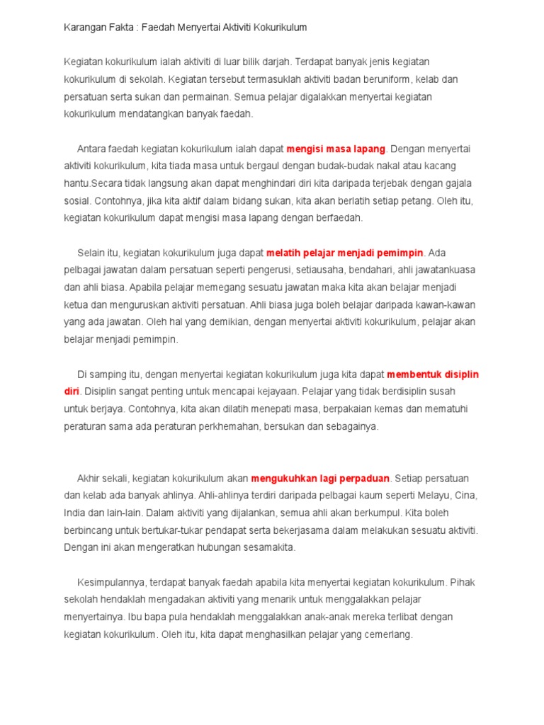 Karangan Spm Tentang Faedah Menyertai Kokurikulum Sekolah
