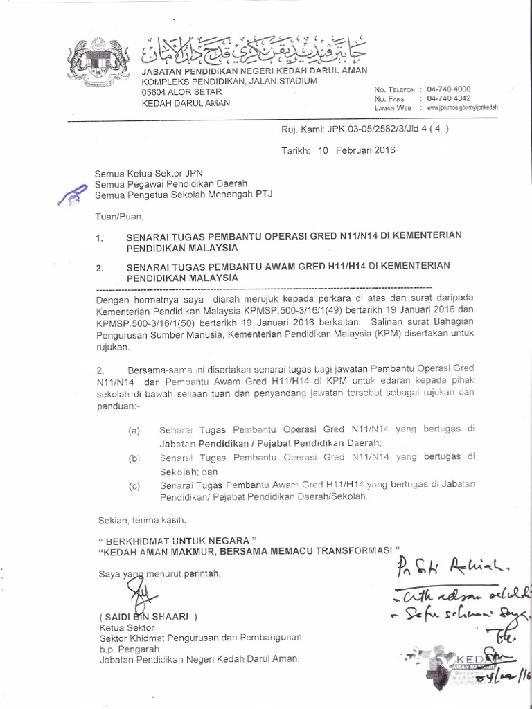 Senarai Tugas Pembantu Awam Gred H11 H14 Di Kpm