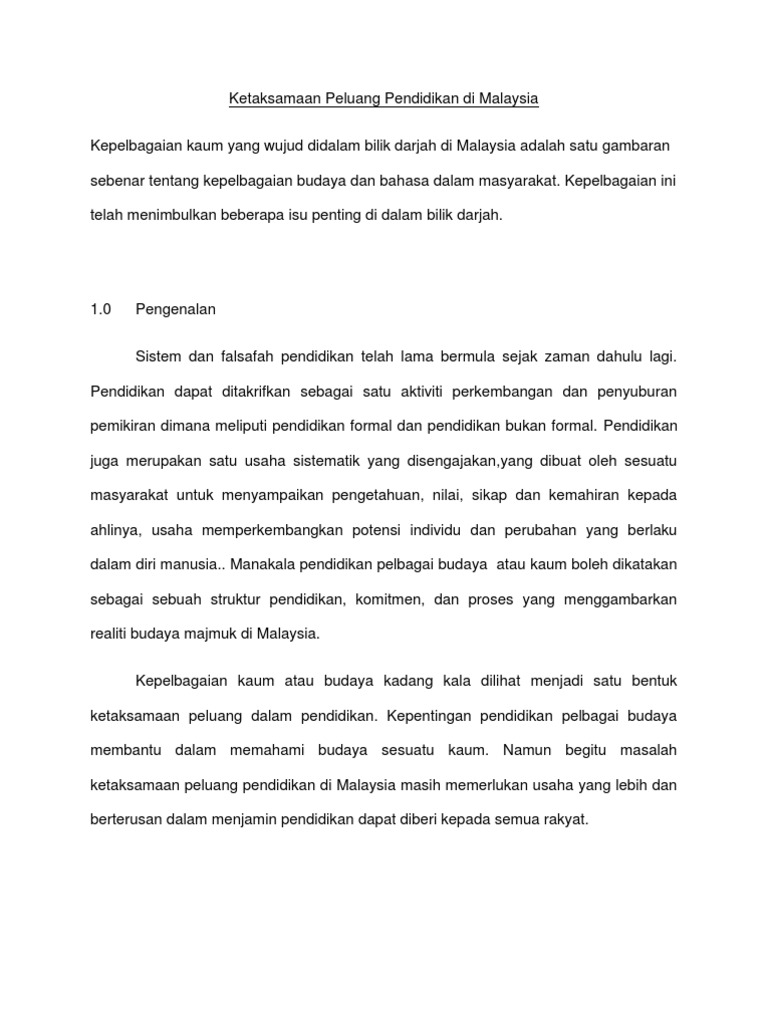 Ketaksamaan Peluang Pendidikan Di Malaysia