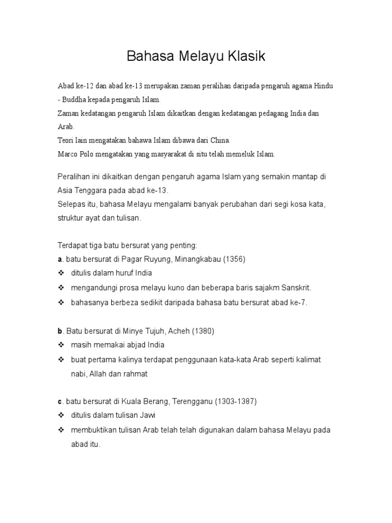 Contoh Kosa Kata Bahasa Melayu Kuno
