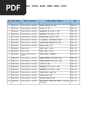 Senarai Harga Buku Teks Sekolah Rendah 2020