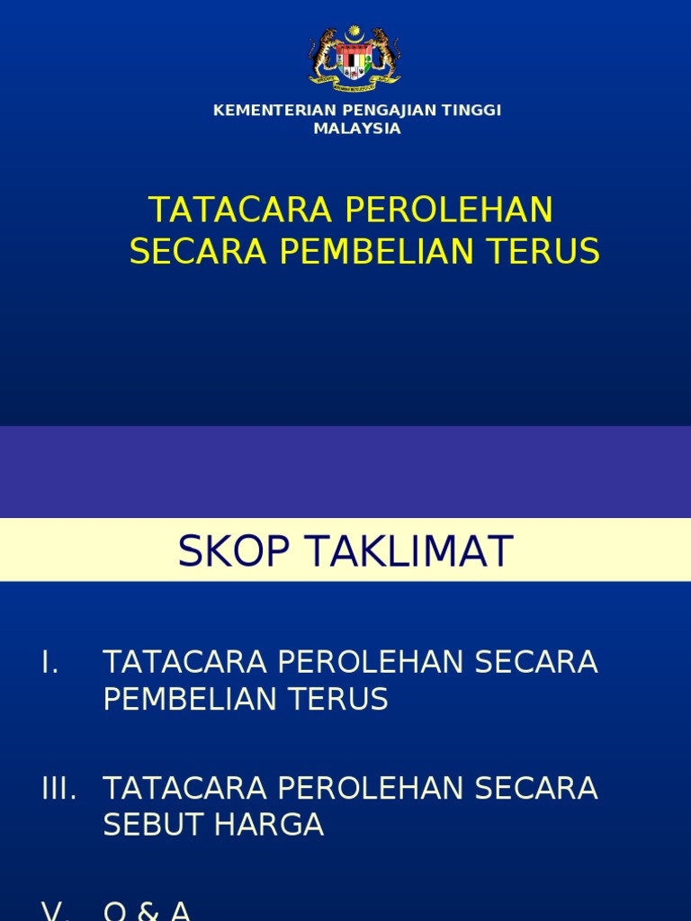 Persoalan Tentang Tatacara Perolehan Secara Sebut Harga Ppt Download
