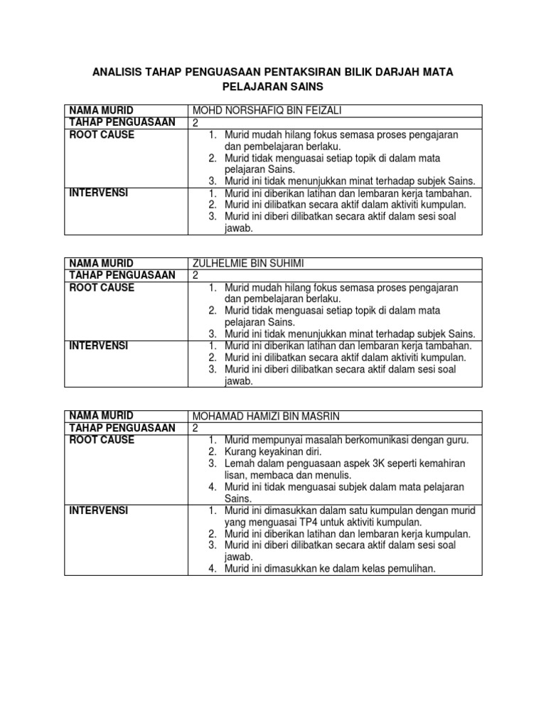 Analisis Tahap Penguasaan Pentaksiran Bilik Darjah Mata Pelajaran Sains