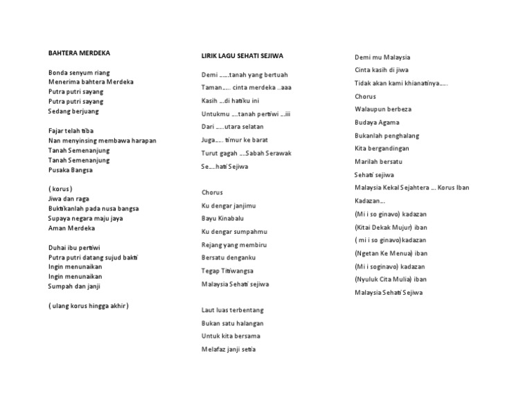 Lirik Lagu-lagu Patriotik Di Malaysia