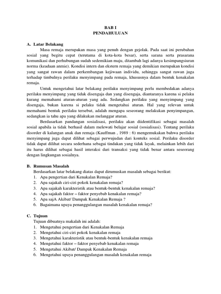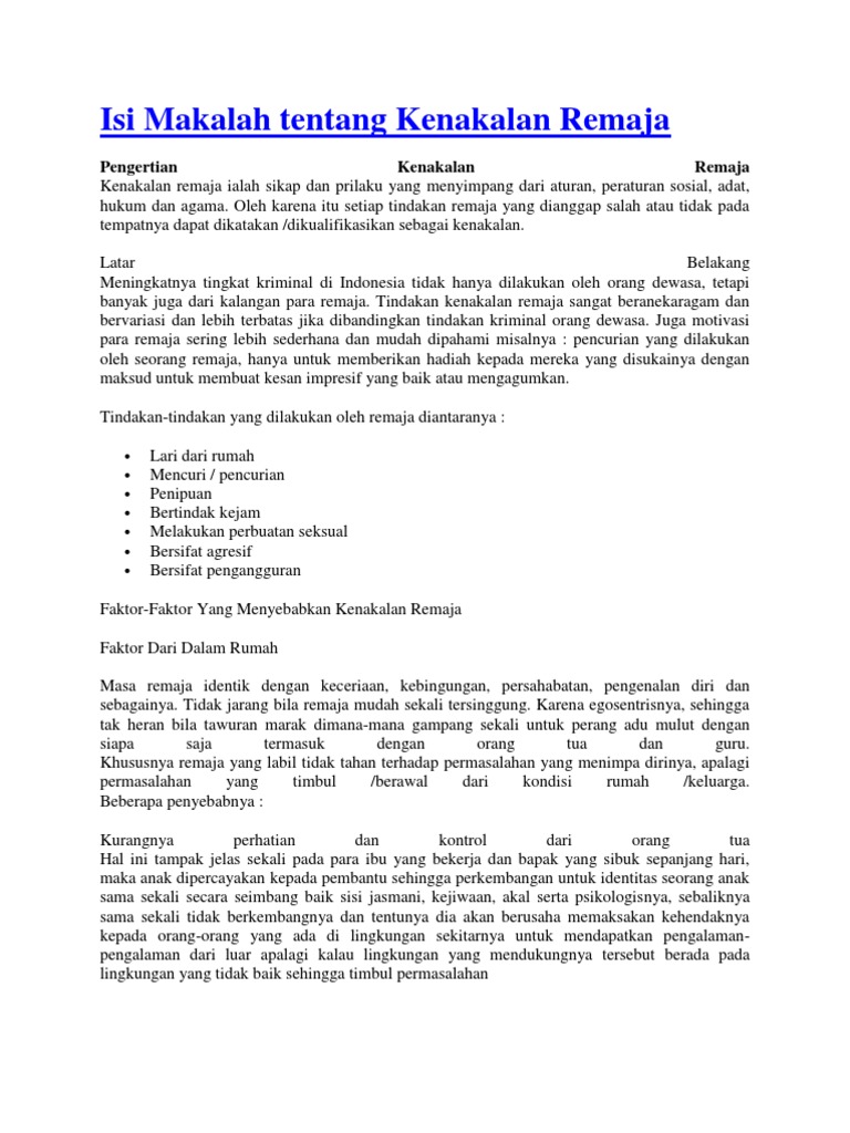 Makalah Kenakalan Remaja Doc Pdf Download Contoh Makalah Lengkap