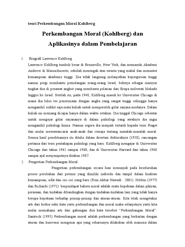 Teori perkembangan moral kohlberg pdf.